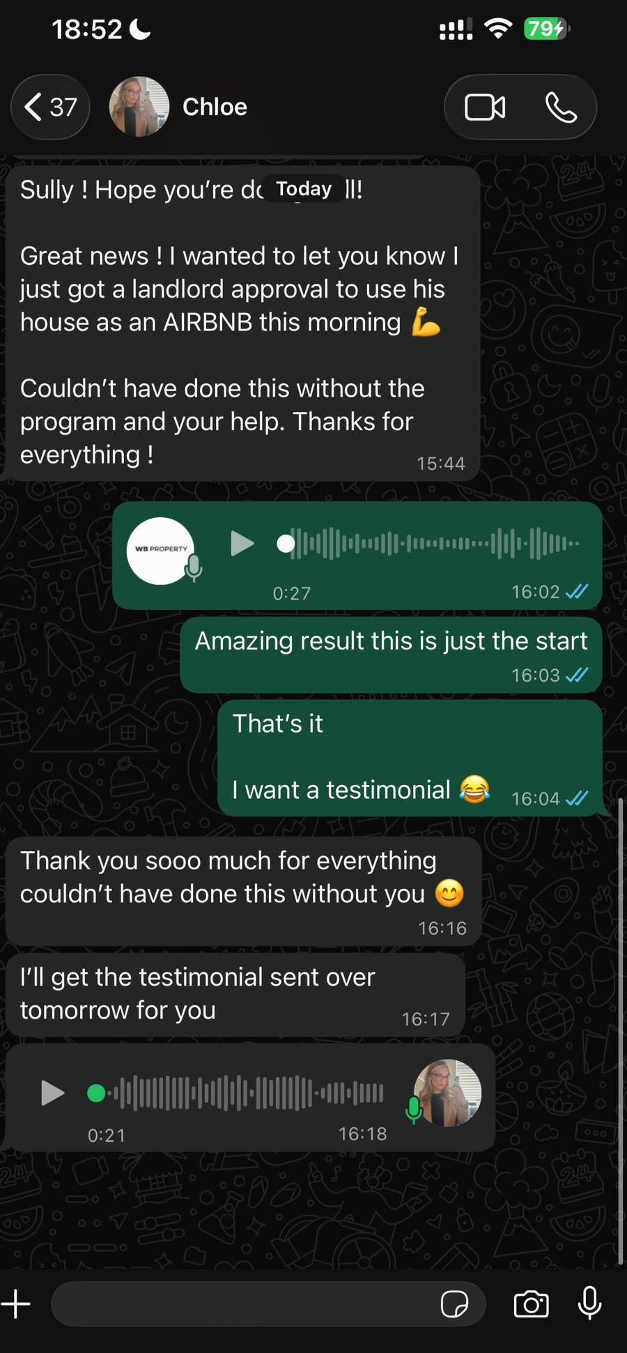 Sarah - ''Its been absolutely fantastic working with sully as he has always been there when you need support. I swiftly got my first Airbnb without any of my own money and now I'm onto the second.''
